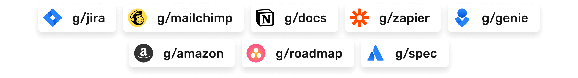 - With the Chrome Extension, simply type g/[shortcut] for even faster access.